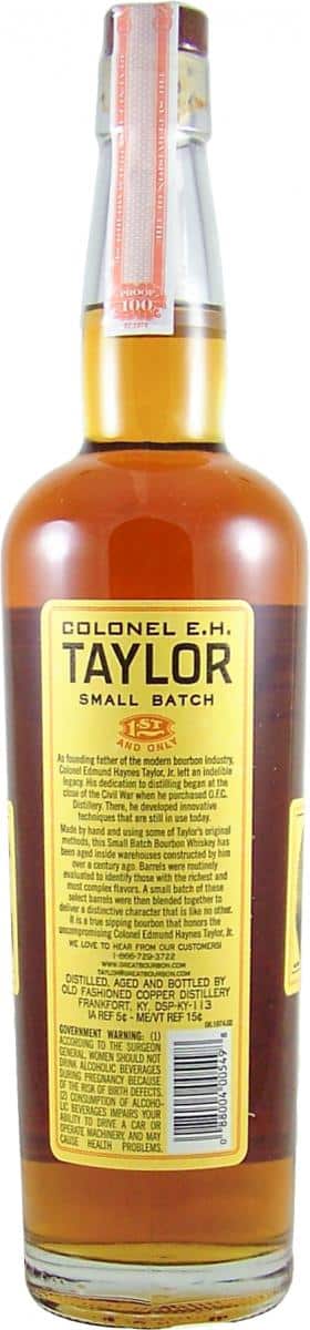 Deze small batch bourbon is vernoemd naar kolonel Edmund Haynes Taylor, een enorm belangrijke figuur in de bourbongeschiedenis van de 19e eeuw. Hij bezat een groot aantal distilleerderijen en introduceerde vernieuwende productiemethoden die vandaag de dag nog steeds worden gebruikt. Het is dan ook niet meer dan logisch dat de Colonel EH Taylor Small Batch zijn naam eer aandoet door absoluut geweldig te zijn.